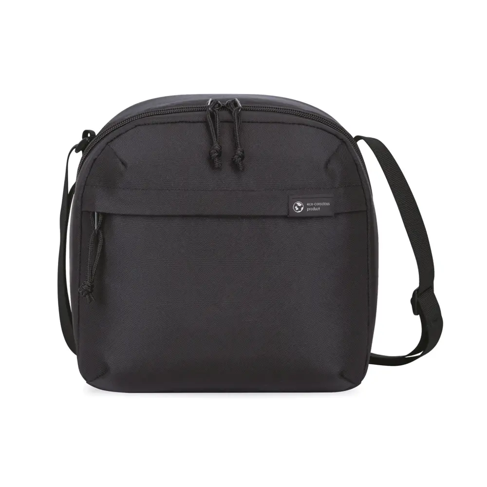 Het voorvak met rits biedt handig opbergruimte voor accessoires, terwijl de dubbele schuine rits toegang geeft tot het geïsoleerde hoofdcompartiment. Perfect voor 9 blikjes of equivalente lunchitems, houdt het uw inhoud koel en vers. De verstelbare schouderriem past zich aan voor links- en rechtshandigen, wat comfortabel dragen garandeert tijdens events of als give-away.