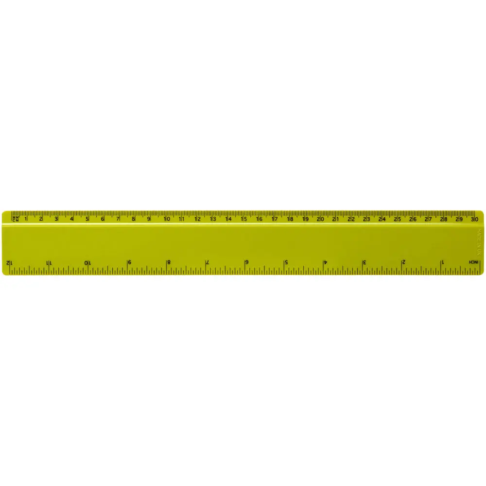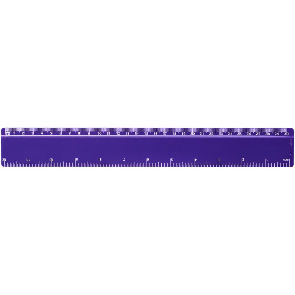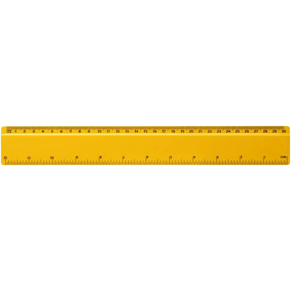 Ontdek onze robuuste liniaal uit GPPS-kunststof, met een lengte van 30 cm. Deze meet 31,2 x 0,3 x 4,2 cm en biedt markeringen in zowel inches als centimeters. De markeringen worden samen met uw artwork bedrukt, wat zorgt voor een naadloze integratie van uw branding.