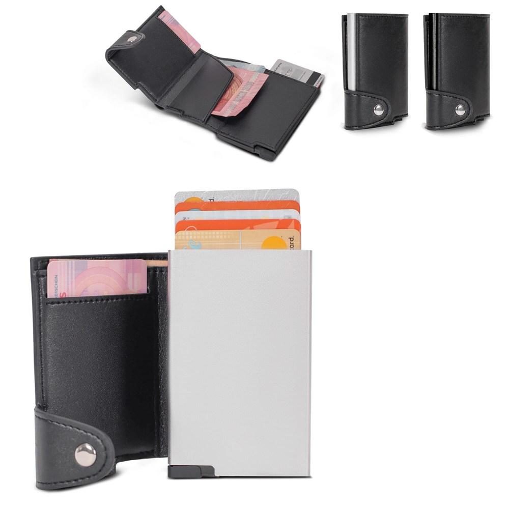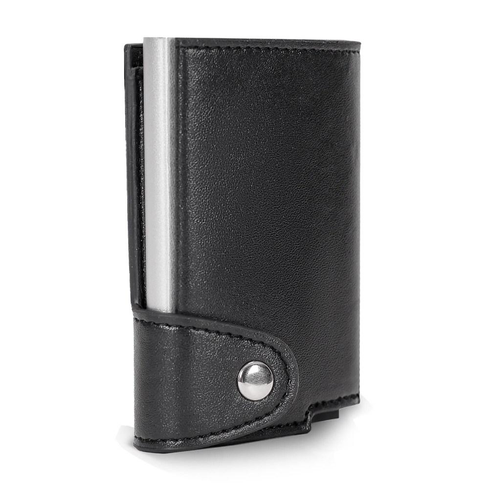 Ontdek deze unieke aluminium kaarthouder met stijlvol leerlook hoesje. Je beschermt moeiteloos je bankpassen tegen rfid-skimming, zodat je gegevens veilig blijven. Druk gewoon op de knop en zes kaarten glijden getrapt naar buiten – ideaal voor dagelijks gebruik, met vier kaarten geschikt voor passen met verdikte letters.