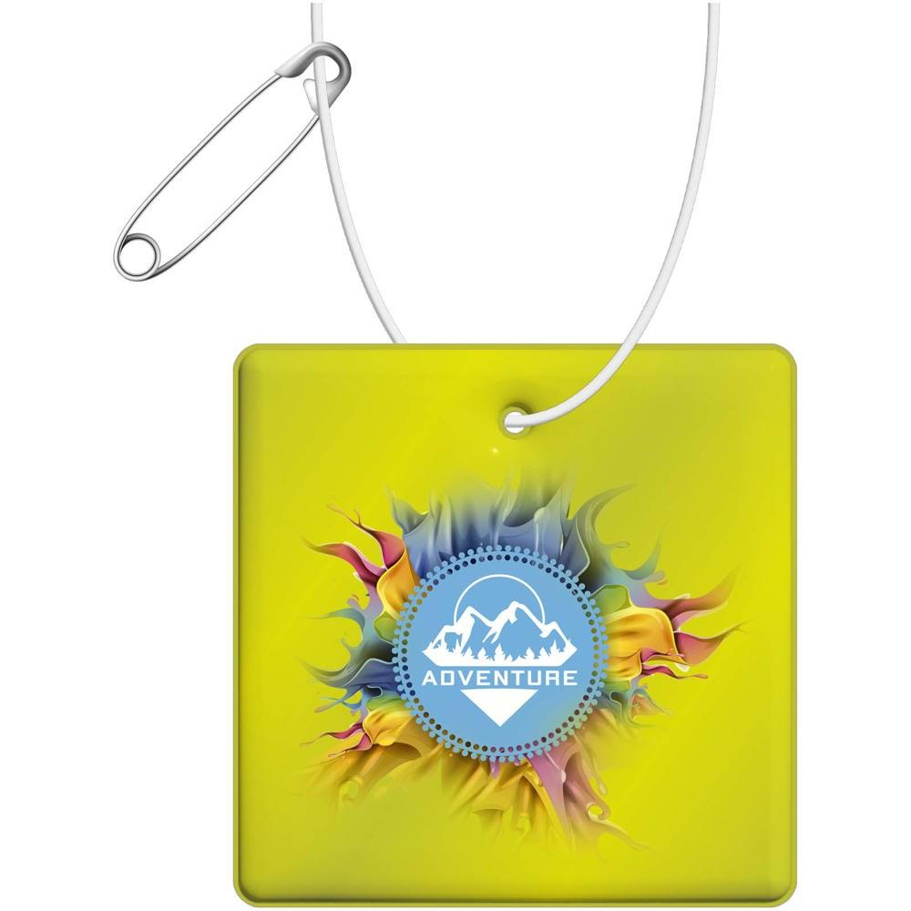 Bevestig deze reflecterende hanger aan kleding, tassen of andere buitenspullen om de zichtbaarheid in het donker te vergroten. Door deze gecertificeerde hangers te gebruiken maak je verkeersveiligheid een kenmerk van je merk. De hangers worden geleverd met een wit koord en een veiligheidsspeld om eenvoudige te bevestigen. Verkrijgbaar in verschillende vormen en maten, en in witte of gele kleur. Voorzien van een fluorescerende RFX™ zachte reflecterende folie van ftalaatvrij PVC. Materialen zijn getest in overeenstemming met de SVHC (zeer zorgwekkende stoffen) REACH kandidaatslijst en zijn vrij van ftalaten. De hangers zijn CE getest en goedgekeurd volgens EN 17353 Type B 1. Elk item wordt geleverd met een 10 cm lange koord en een speld om het gemakkelijk aan een tas, jas etc. te bevestigen. Verpakt samen met een informatieblad in een zakje van glasine, een materiaal gemaakt van houtpulp Gemaakt in Europa.