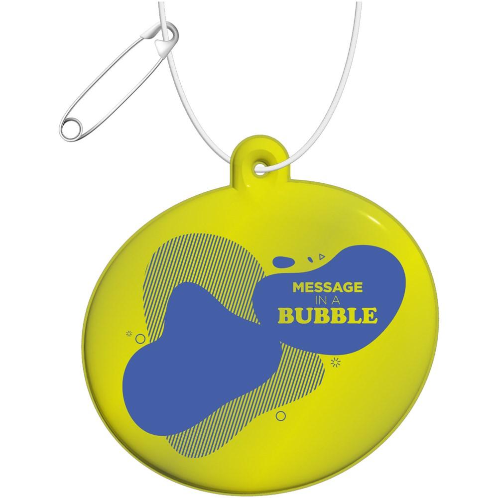 Bevestig deze reflecterende hanger eenvoudig aan kleding, tassen of andere buitenartikelen en verhoog je de zichtbaarheid in het donker aanzienlijk. Je maakt verkeersveiligheid tot een sterk kenmerk van je merk, ideaal als gepersonaliseerd relatiegeschenk met logobedrukking voor events of promotie.