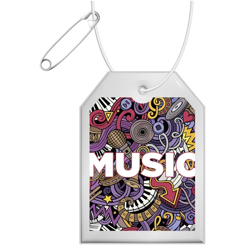 De hanger meet 4,3 x 6 cm en is vervaardigd uit kwalitatief PVC-kunststof met fluorescerende RFX™ folie, ftalaatvrij en getest op SVHC REACH-conformiteit. CE-goedgekeurd volgens EN 13356:2001 Type 1, zorgt dit voor premium kwaliteit en duurzaamheid. Gemaakt in Europa, biedt het een milieubewuste keuze voor uw marketingacties. Personaliseer met uw logo voor effectieve branding tijdens events of als reclame-uitdeelproduct.