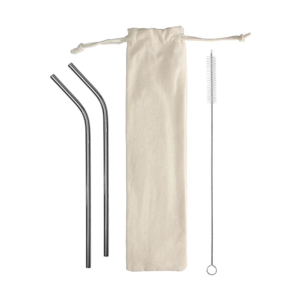 Ontdek het perfecte milieuvriendelijke alternatief voor plastic rietjes: een set van 2 herbruikbare roestvrijstalen rietjes met reinigingsborstel. Alles komt in een handig veredelbaar katoenen zakje met trekkoord, rietjeslengte ca. 20,5 cm.