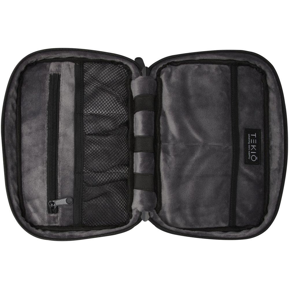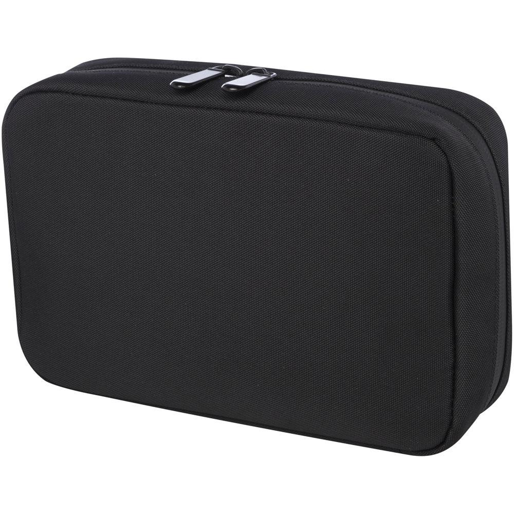 De Rise organizertas is een veelzijdige en hybride oplossing om alle technologiegerelateerde items te ordenen. Deze hardshelltas is gemaakt van duurzaam 900D GRS-gerecycled polyester en heeft een GRS-gerecycled fluwelen voering, twee zakken, mesh-zakken, elastische banden aan de onderkant voor kabels en een ritsvak voor extra accessoires. Alle zakken zorgen voor een optimale organisatie en de harde buitenkant beschermt alle waardevolle gadgets.
