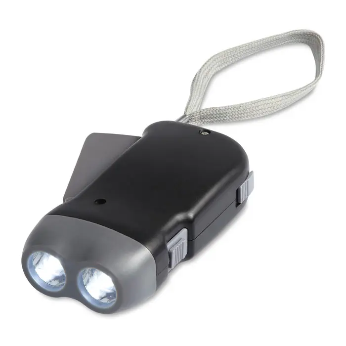 Ontdek deze praktische led zaklamp uit stevig ABS-materiaal, ideaal voor uw marketingacties en events. Met twee krachtige led-lichtjes en een dynamo-functie biedt hij betrouwbare verlichting zonder afhankelijk te zijn van externe stroombronnen. Inclusief drie AG10-batterijen voor extra gebruiksgemak.