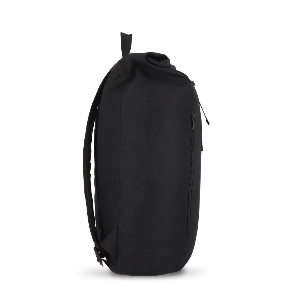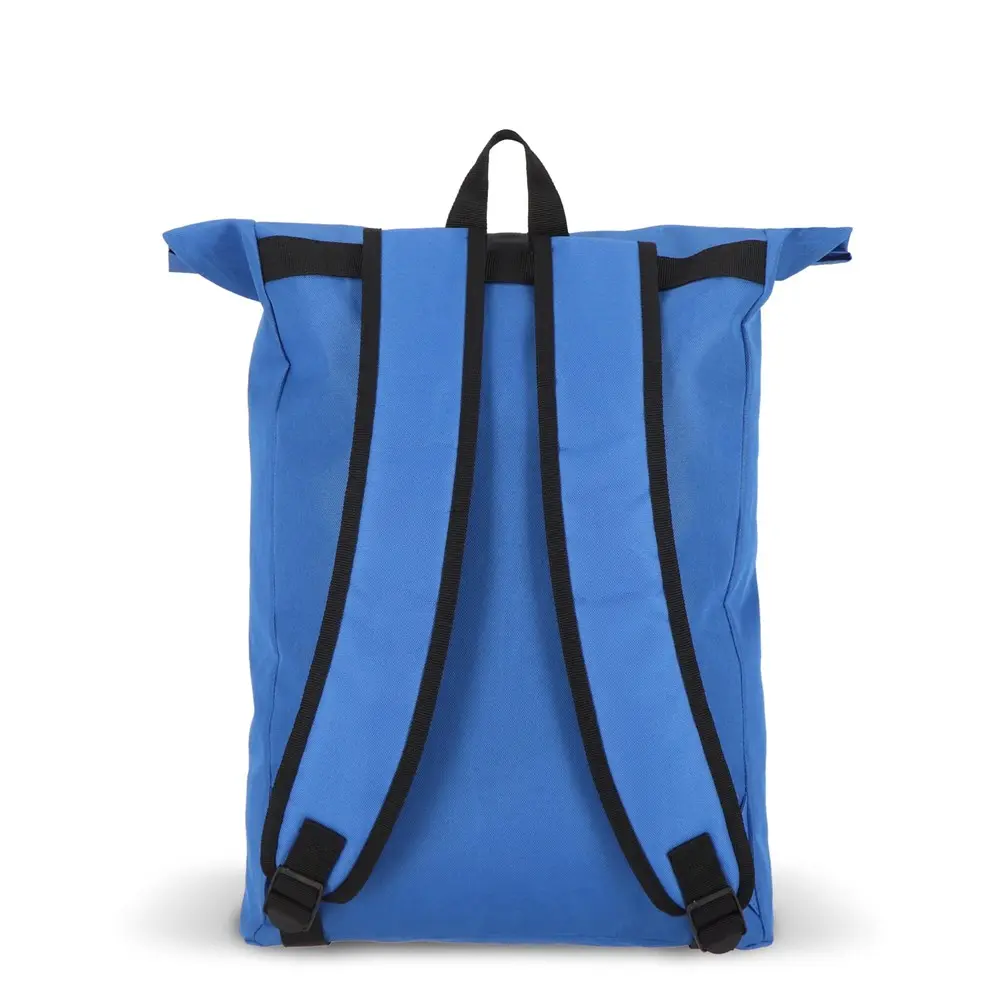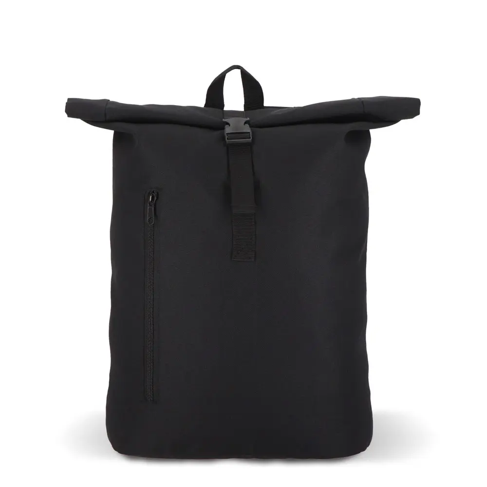Deze handige rugzak in het trendy roll-top ontwerp is gemaakt van gerecycled PET. Hij heeft verstelbare, gewatteerde schouderbanden, een handvat aan de bovenkant en een voorvak met ritssluiting, ideaal voor kleinere accessoires.