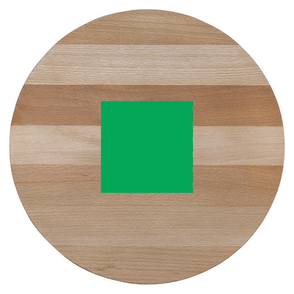 Een ronde plank van 30 centimeter in diameter die op een plateau staat waardoor de plank kan draaien.