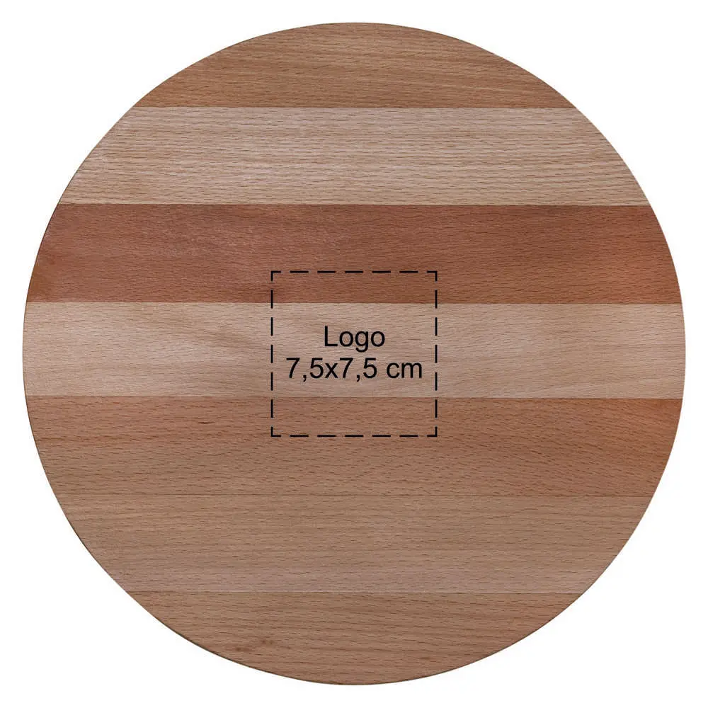 Deze ronde plank biedt talrijke voordelen als gepersonaliseerd relatiegeschenk. De eenvoudige doch elegante vorm trekt de aandacht tijdens events en bijeenkomsten. Door logobedrukking te laten aanbrengen, promoot u uw merk effectief bij klanten en relaties. Het draaibare ontwerp verhoogt de gebruiksvriendelijkheid, ideaal voor het serveren van hapjes, kaas of fruit, en versterkt zo de positieve associatie met uw bedrijf.