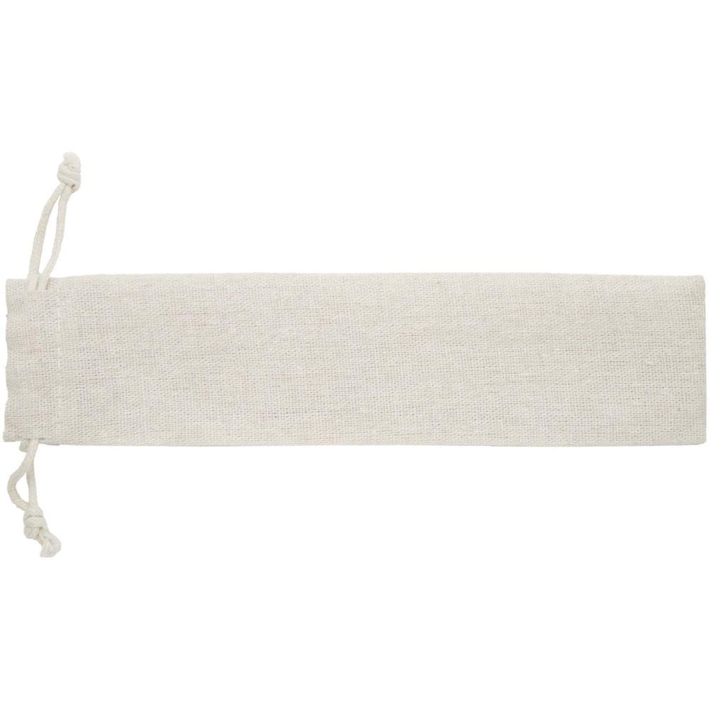Root-bestekset inclusief vork, mes, lepel, rietje en schoonmaakborstel. Het bestek is gemaakt van roestvrij staal dat duurzaam en gemakkelijk te reinigen is en de handgrepen zijn gemaakt van beukenhout. Geleverd in een katoenen zakje.