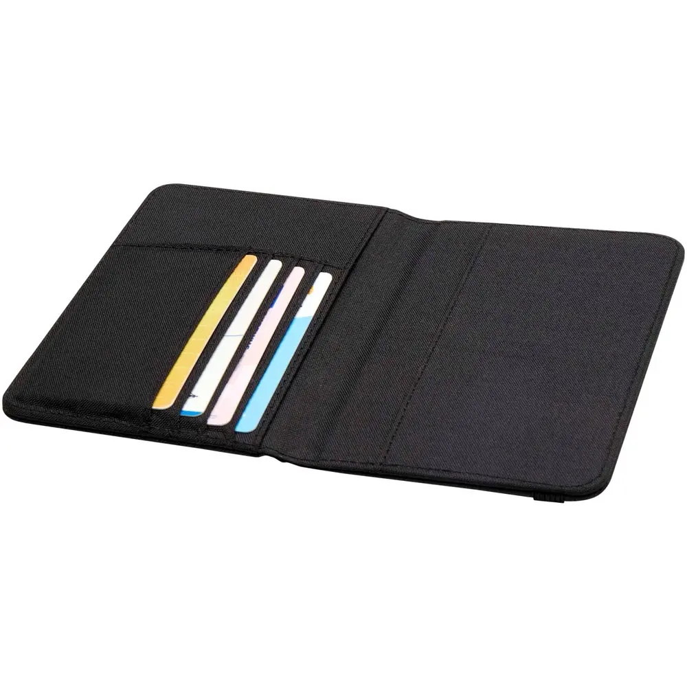 Bent u op zoek naar een praktisch relatiegeschenk dat uw merkpromotie versterkt? Deze RFID-paspoorthouder van gerecycled polyester biedt optimale bescherming voor paspoorten en kaarten tijdens reizen. Met speciale vakjes voor tickets, creditcards en andere essentials houdt u alles georganiseerd en veilig. De elastische bandsluiting zorgt voor een stevige sluiting, zodat de inhoud beschermd blijft tegen verlies of diefstal.