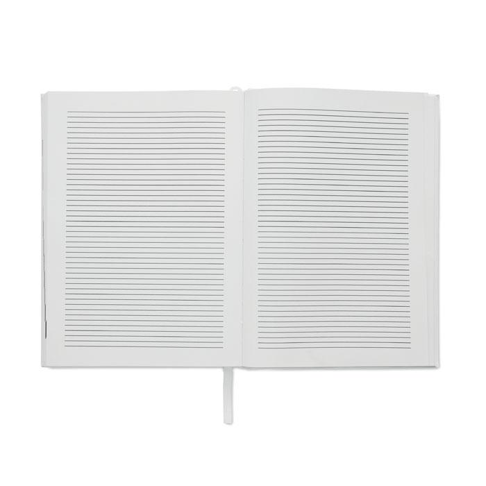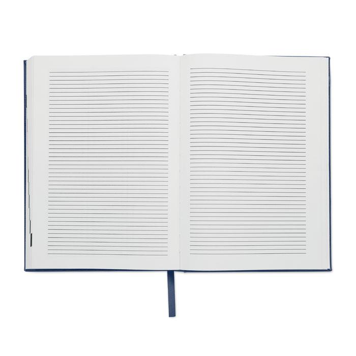 A5 ongedateerde dagelijkse agenda met kaft van 60% gerecycled post consumer polyester en 40% PU. 416 universele pagina’s op 70g/m² gerecycled papier (208 vellen). Bijpassende gekleurde bladwijzer met polyester lint.