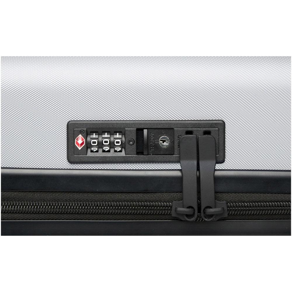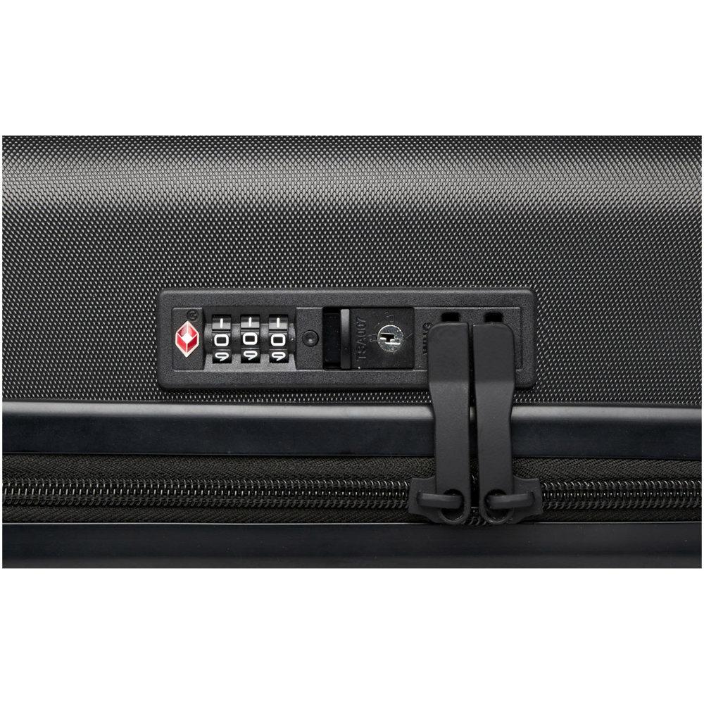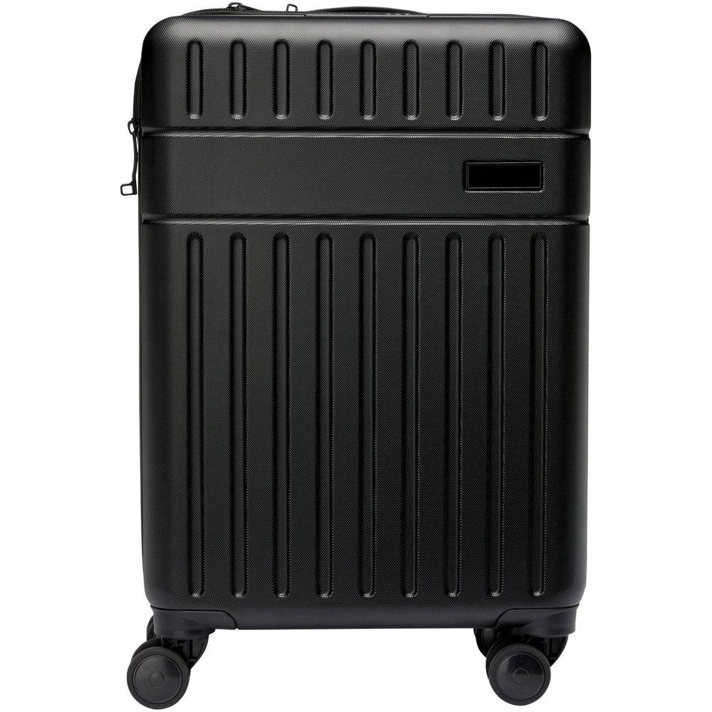 Ontdek de perfecte 20" cabine trolley als gepersonaliseerd relatiegeschenk. Je kiest voor impactbestendig gerecycled plastic en RPET-voering, gecombineerd met een stevig dubbelzijdig aluminium frame. Dankzij de soepele 360 graden 4-wiel spinner en verstelbare handgreep reis je moeiteloos en comfortabel.