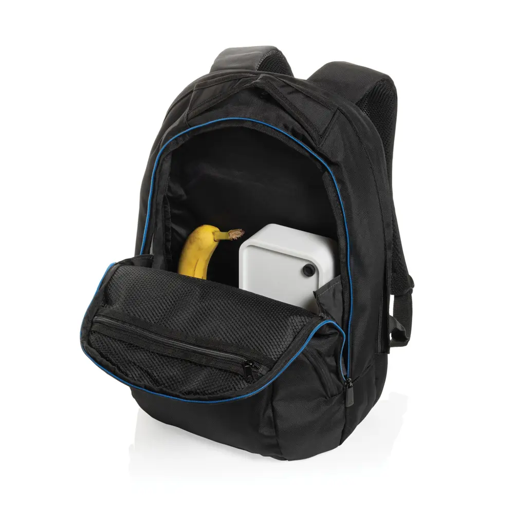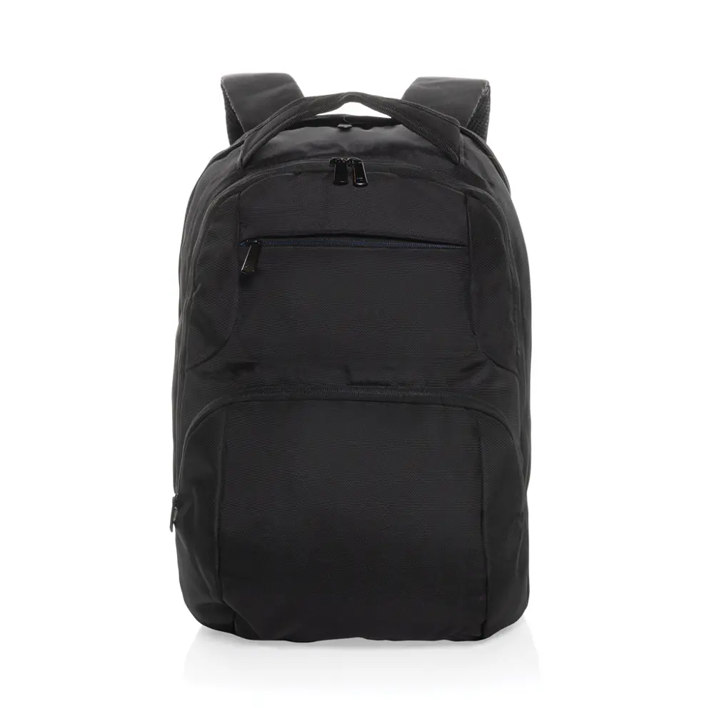 Ontdek deze universele laptoprugzak, vervaardigd uit 1200D polyester met rPET-materiaal. Het klassieke ontwerp biedt twee ruime hoofdcompartimenten, ideaal voor uw dagelijkse bezigheden. Een dedicated vak voor een 15,6 inch laptop zorgt voor veilige bewaring, terwijl voorvakken met ritssluiting extra opbergruimte bieden voor accessoires.