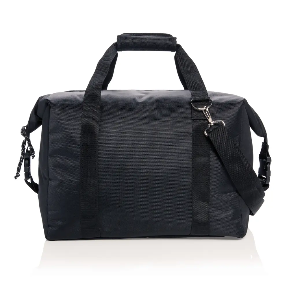 Ontdek onze XXL tote & duffle koeltas, vervaardigd uit robuust polyester voor optimale duurzaamheid. Deze veelzijdige tas transformeert eenvoudig van tote naar duffle dankzij de buckle-sluiting, ideaal voor uw events en promotieacties. Met een enorme capaciteit van 40 liter bergt u tot 10 flessen van 1,5 liter of 52 blikjes op, perfect voor het uitdelen aan klanten als gepersonaliseerd relatiegeschenk met uw logo.