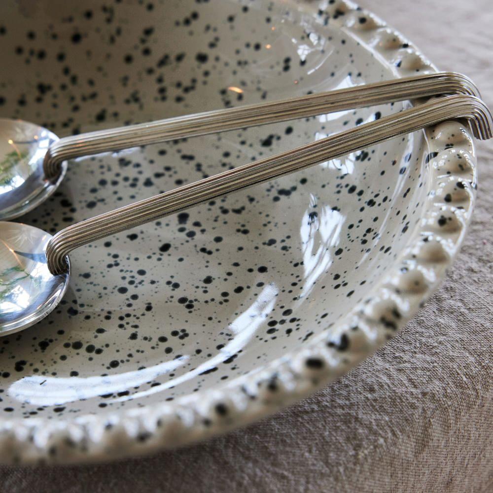 Dit ruime serveersbord met een diameter van 260 mm is perfect voor salades, brood of fruitsalade. Gemaakt van kwalitatief keramiek, is elk bord uniek door het handwerk – ideaal voor een persoonlijke touch.