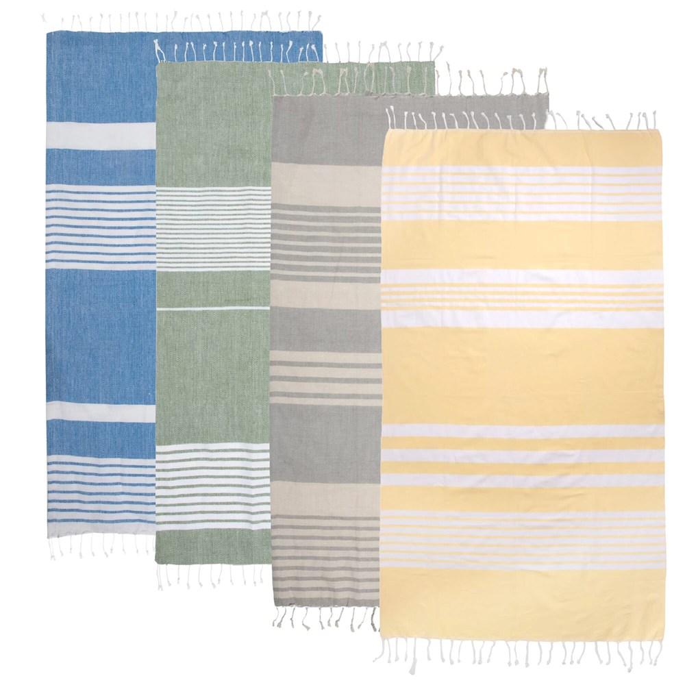 Deze hamamdoek van biokatoen (145x250 cm) droogt razendsnel en heeft klassieke strepen met omzoomde randen voor een stijlvolle look. Gebruik hem als picknickkleed, tafellaken of badhanddoek – hij past perfect in elk interieur.