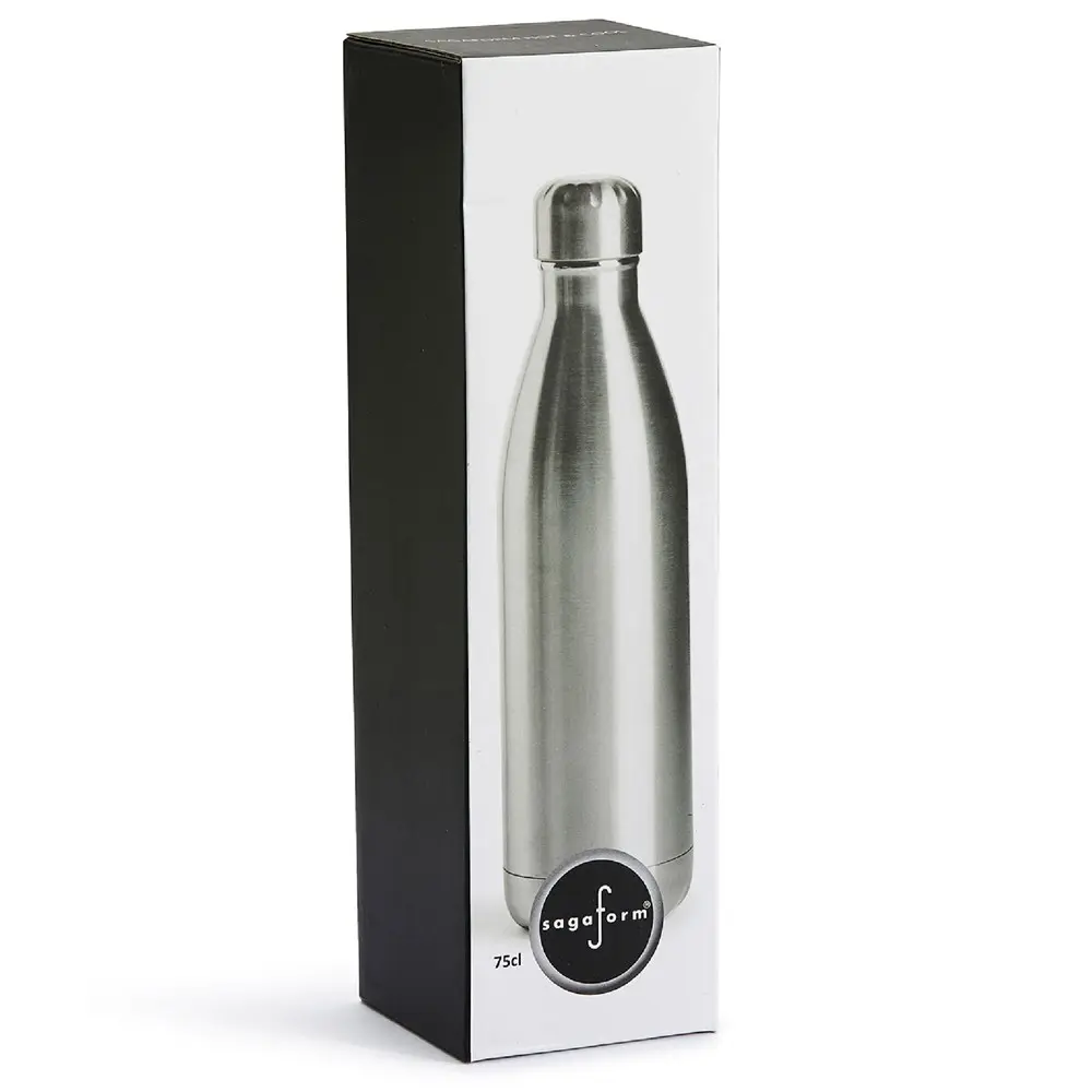 Ontdek de Sagaform Nils stalen fles van 750 ml, een grotere variant van ons klassieke model. Deze robuuste fles met geavanceerde vacuümconstructie en dubbelwandig staal met koperen coating biedt superieure isolatie zonder condensatie. Uw drankjes blijven tot 24 uur ijskoud of 12 uur warm, ideaal voor lange dagen of events.