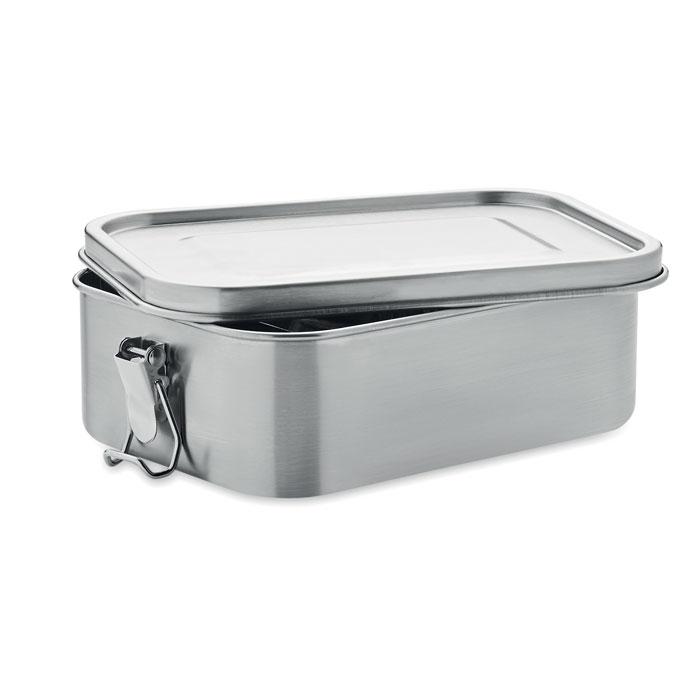 Ontdek deze robuuste roestvrijstalen lunchbox van 1200 ml, ideaal als gepersonaliseerd relatiegeschenk met jouw logo. Met sterke, veilige gespen aan de zijkant en een verschuifbare verdeler organiseer je maaltijden eenvoudig en voorkom je uitloop.