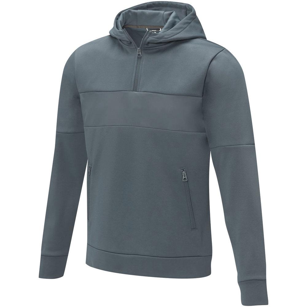 Ontdek de Sayan anorak heren sweater met halve rits en capuchon, perfect voor jouw merkpromotie. Deze sweater combineert stijl en functionaliteit met een uniek anorak-ontwerp, halve rits voor laagjes en een capuchon voor extra comfort. Gemaakt van 350 g/m² polyester-Sorona® breisel, dat duurzaamheid en milieuvriendelijkheid biedt zonder in te boeten op prestaties.