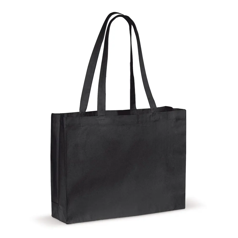 Ontdek onze robuuste schoudertas van zware canvaskatoen, ideaal voor uw promotionele campagnes. Met afmetingen van 45x10x33 cm biedt deze tas extra ruimte dankzij de verstevigde zij- en onderkant, perfect om flyers, gadgets of andere giveaways in te transporteren.