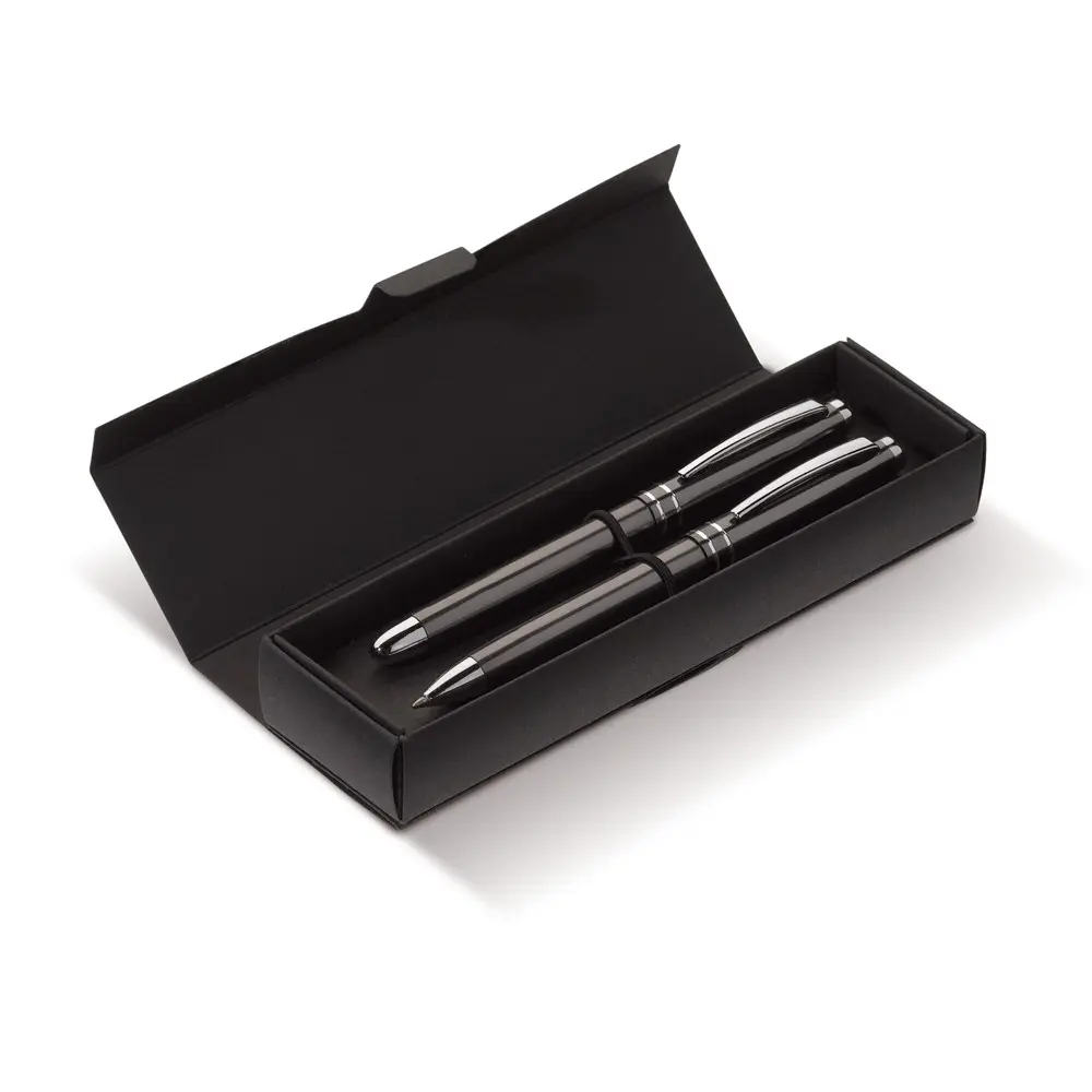 Deze schrijfset is perfect voor marketingprofessionals en eventorganisatoren. Personaliseer hem met uw logo om uw merk zichtbaar te houden bij uw klanten. De hoogwaardige metalen afwerking geeft een premium gevoel, wat bijdraagt aan een positieve associatie met uw onderneming. Door deze set uit te delen tijdens events of als bedankje, versterkt u relaties en verhoogt u de naamsbekendheid. Bovendien voldoet de productie aan Amfori BSCI-normen, wat uw commitment aan ethisch ondernemen onderstreept en aantrekkelijk is voor bewuste partners.