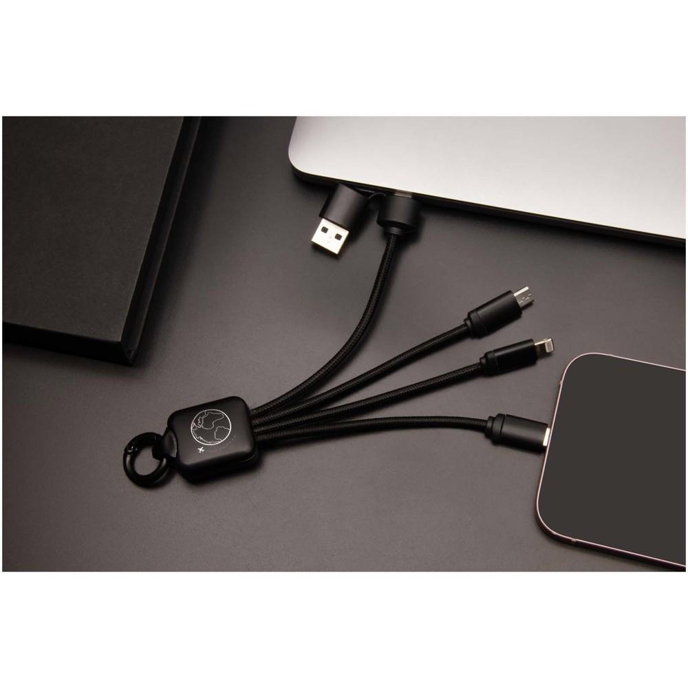 Deze veelzijdige kabel met metaalachtige afwerking en rPET-snoeren uit gerecyclede plastic flessen is ideaal als gepersonaliseerd relatiegeschenk. Bedruk hem met jouw logo en deel hem uit op events of aan klanten – zo promoot je je merk op een praktische manier.
