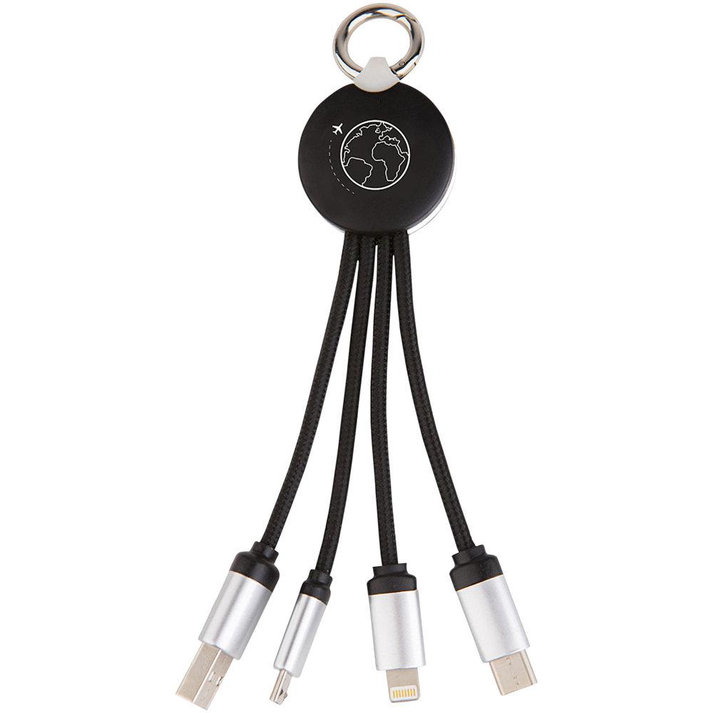 Ontdek deze praktische oplaadkabel met oplichtend logo, perfect als gepersonaliseerd relatiegeschenk voor jouw events of marketingacties. Je laadt tegelijkertijd tot drie apparaten op dankzij de drie aansluitingen: Type C, Android en iPhone. De compacte lengte van 10 cm inclusief stekkers maakt hem ideaal om mee te nemen of uit te delen.