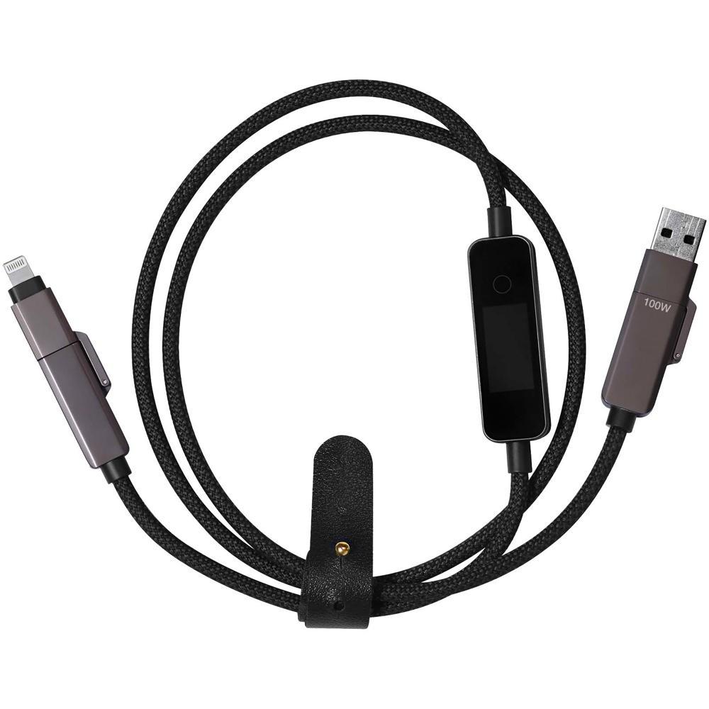 Personaliseer het scherm volledig met je eigen logo of een geanimeerde GIF – ideaal als gepersonaliseerd relatiegeschenk met logobedrukking voor je events of marketingacties. De 1 meter lange kabel heeft USB-C- en iPhone-connectoren, dubbele USB-A + USB-C inputs, gerecyclede siliconen en zinklegering eindstukken voor topkwaliteit en duurzaamheid.