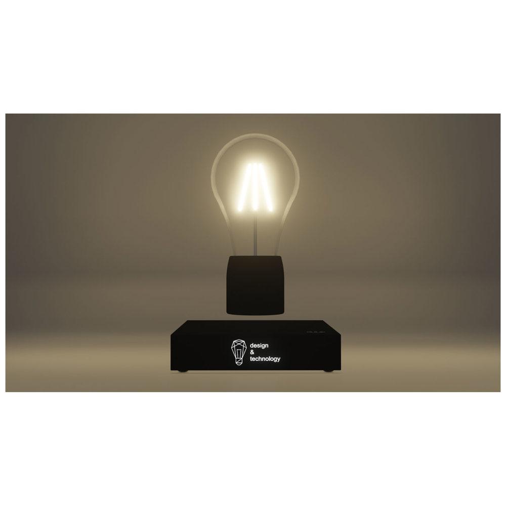Je trekt meteen de aandacht met deze levitatielamp op je bureau of tijdens events. Dankzij de krachtige magnetische technologie zweeft de lamp moeiteloos boven de zachte rubberen voet, wat een uniek en futuristisch effect creëert. Personaliseer de voet met je oplichtende logo voor een blijvende indruk bij je klanten.