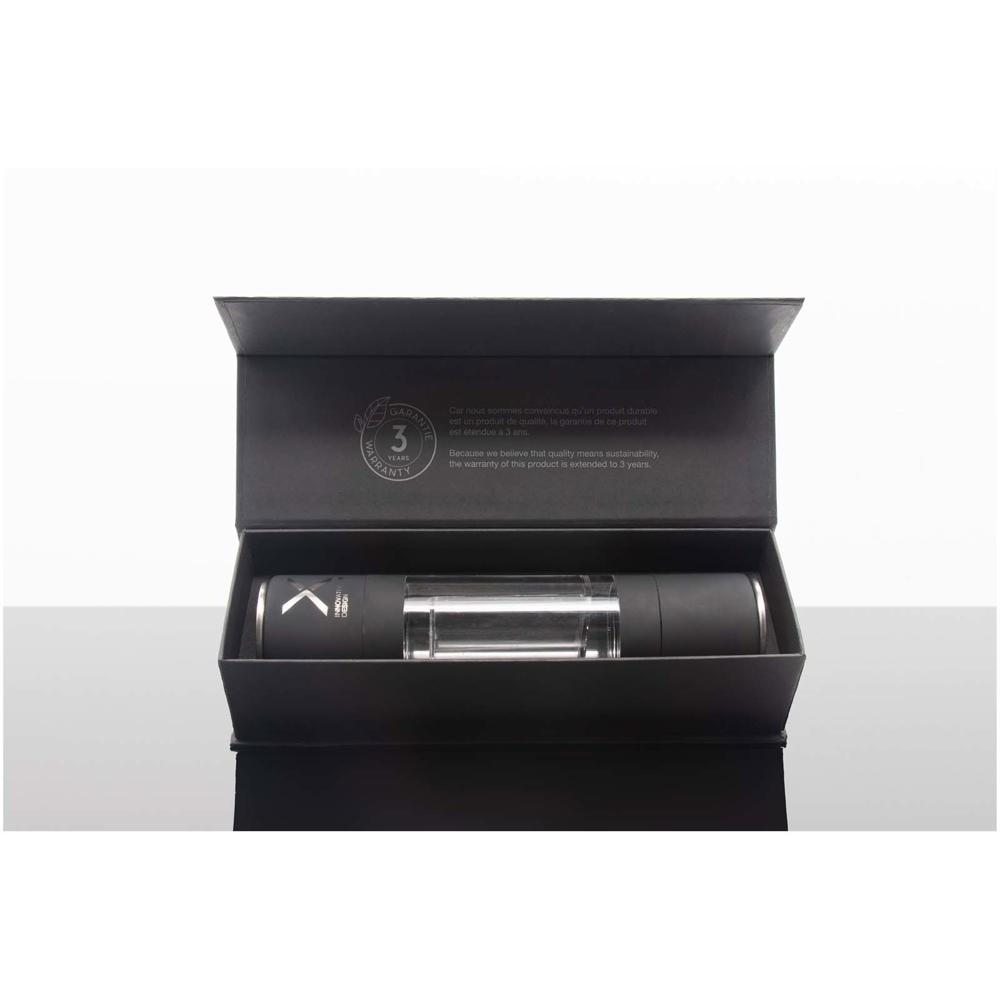 Pas de maling precies aan met het discrete knopje aan de basis, voor een optimale smaak in elke maaltijd. Ideaal als gepersonaliseerd promotiemateriaal voor events of marketingacties, met lasergravure in metallic-effect voor je logo – zo laat je je merk blijvend indruk maken.