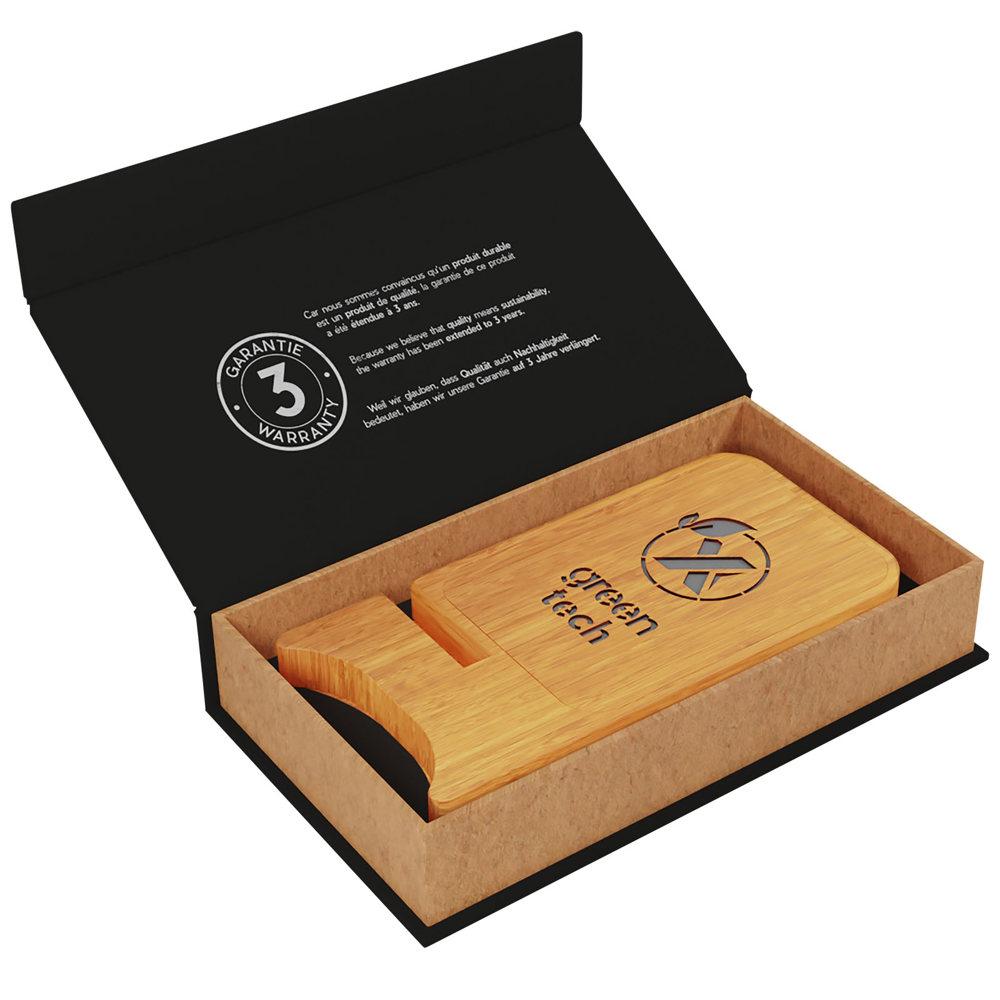 - Duurzaam en groen: Bamboe uit verantwoorde bronnen en oplaadkabel van gerecycled PET tonen jouw engagement voor het milieu.