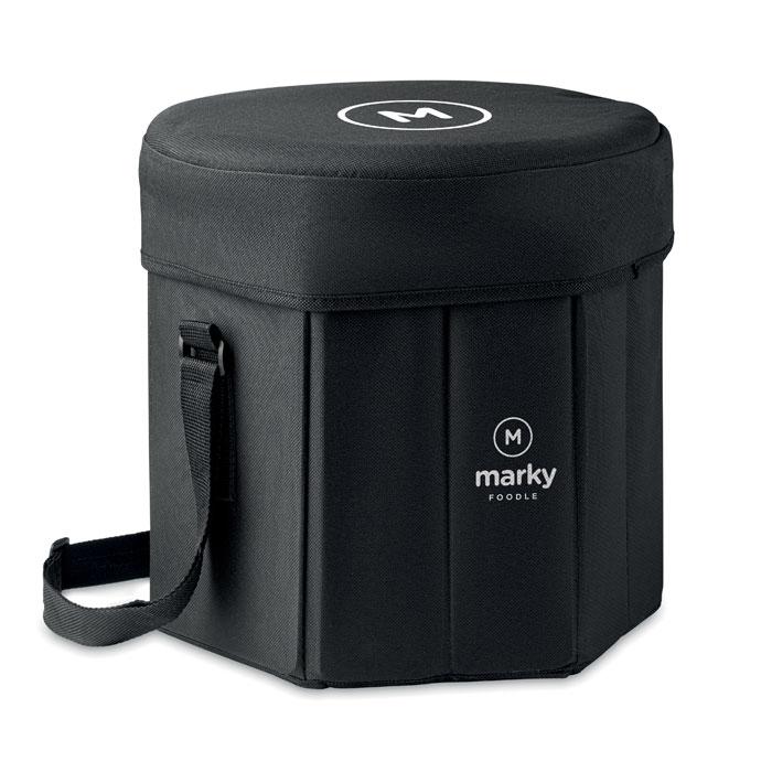 600D polyester opvouwbare koeltas gevoerd met aluminiumfolie en inclusief handige draagriem. De koeltas kan tevens dienst doen als krukje of tafeltje. Maximaal gewicht 80 kg.