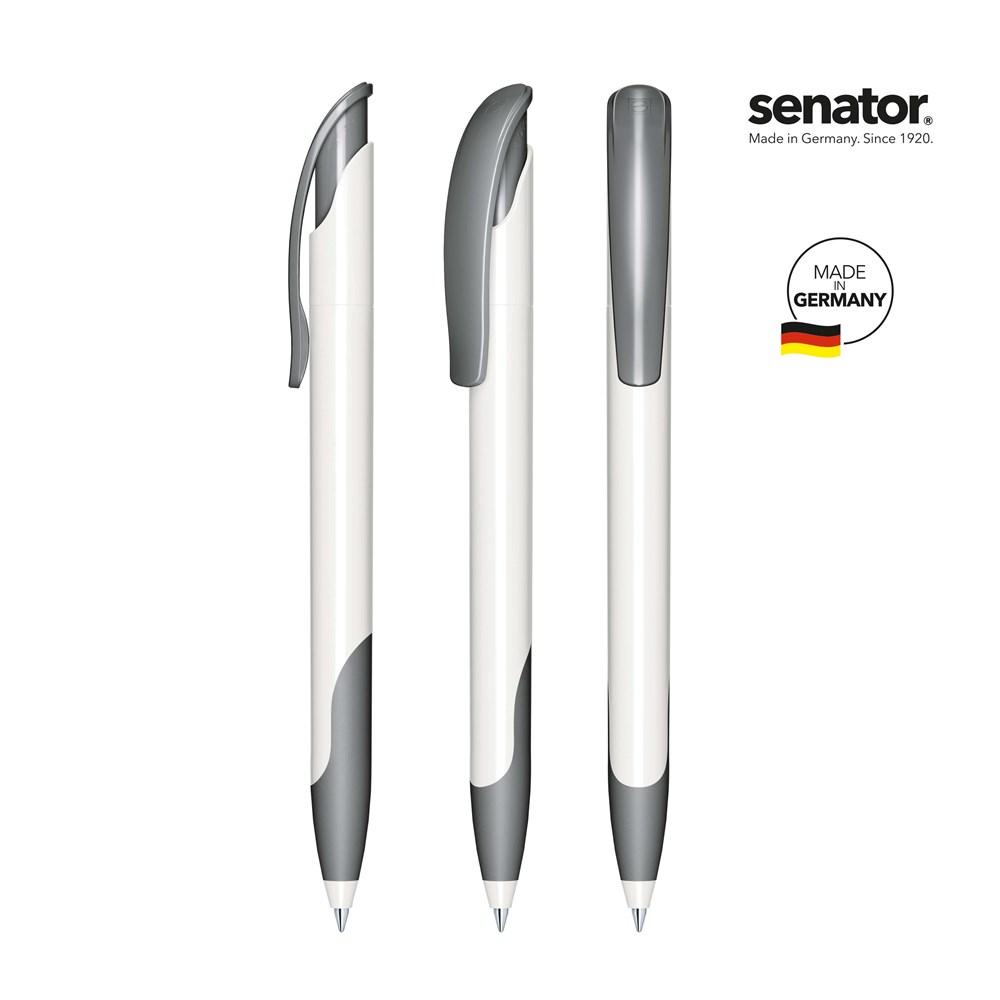 senator® Challenger Polished Basic SG balpen, Polished witte houder, gekleurde polished clip en softgrip, senator® magic flow G2 vulling (1.0 mm), Schrijfkleur: blauw of zwart