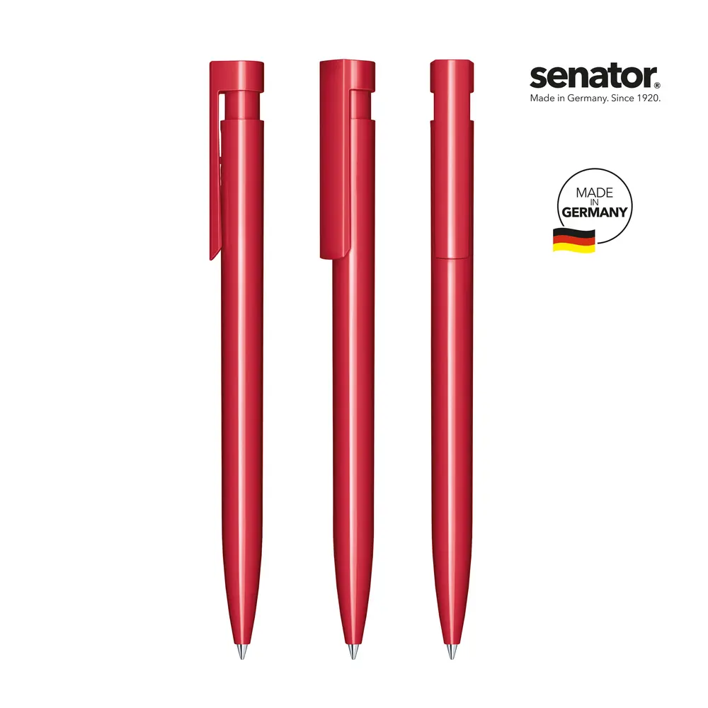 De Senator® Liberty glanzende drukbalpen is een stijlvol relatiegeschenk dat uw merk professioneel promoot. Gemaakt van plastic met 50% gerecycled materiaal en geproduceerd in Europa, voldoet deze balpen aan uw duurzaamheidsdoelen terwijl hij een premium uitstraling behoudt. Met de senator® magic flow G2-vulling (1.0 mm) schrijft hij soepel en betrouwbaar, ideaal voor dagelijks gebruik door uw klanten.