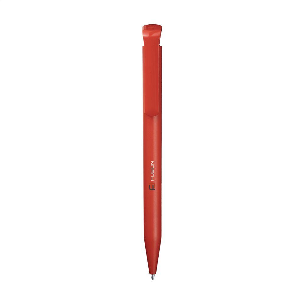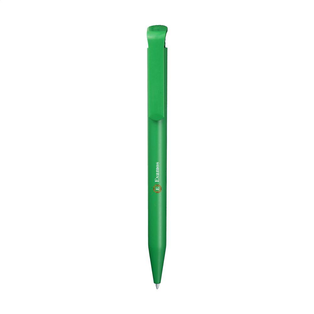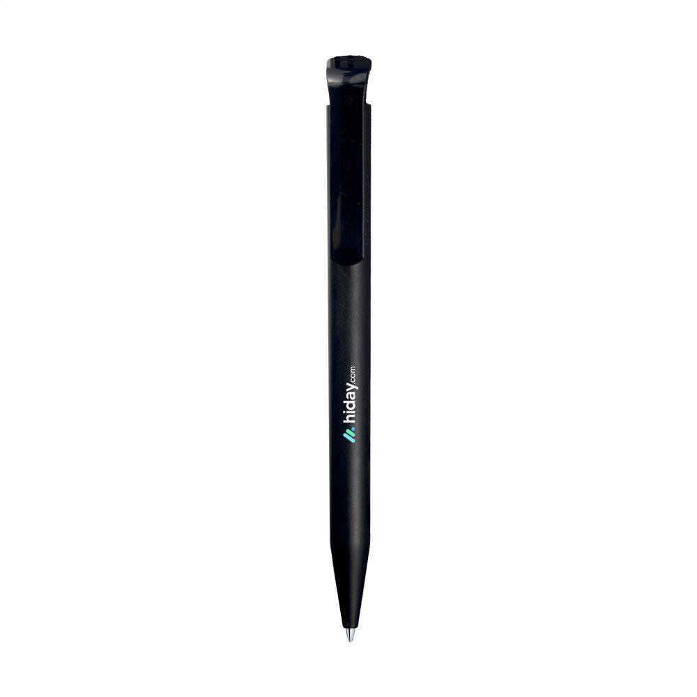 De strakke, matte houder met royale clip en drukknop zorgt voor een premium uitstraling die indruk maakt bij events of als reclame-uitdeling. Standaard voorzien van een 'recycled material' logo naast de clip, en met een diameter van 15 mm liggen ze ideaal in de hand voor comfortabel schrijven.