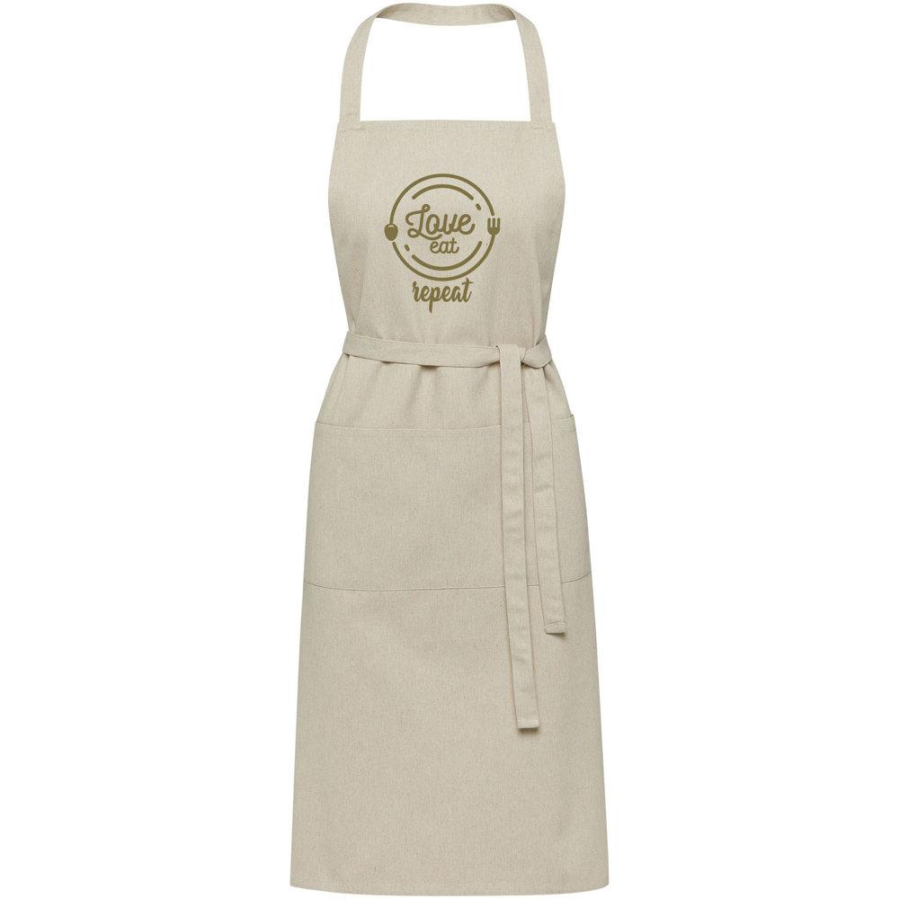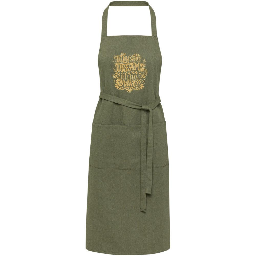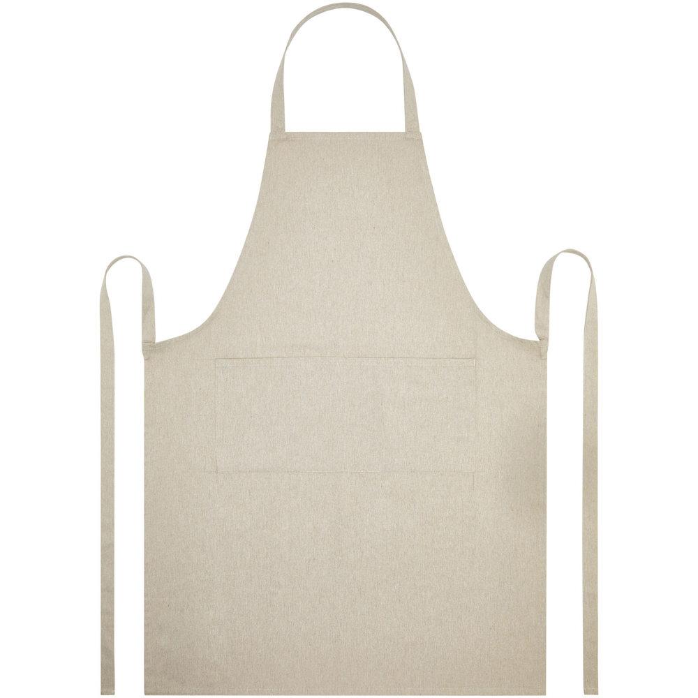 Shara 240 g/m² Aware™ schort – het perfecte gepersonaliseerde relatiegeschenk voor jouw events en promoties. Je ontvangt een stevig schort van 240 g/m² met 70% gerecycled katoen en 30% gerecycled polyester, dat comfortabel draagt en lang meegaat. Met twee ruime aangrenzende zakken (elk 22 x 20 cm) en een praktische striksluiting van 1 meter is het ideaal voor dagelijks gebruik.