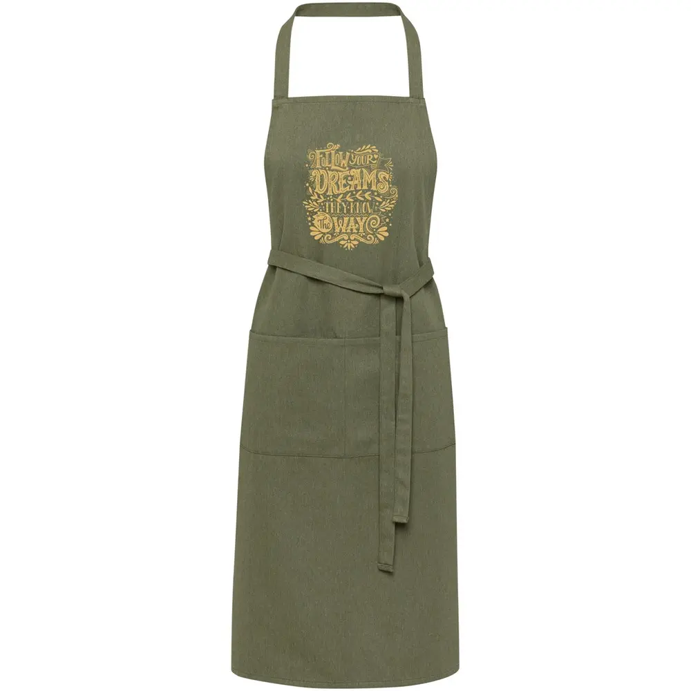 Ontdek het Shara schort als ideaal gepersonaliseerd relatiegeschenk voor uw bedrijf. Dit stevige schort, vervaardigd uit 240 g/m² gerecycled katoen en polyester, biedt comfort en duurzaamheid tijdens events of dagelijkse promoties. Met twee ruime zakken van 22 x 20 cm en een verstelbare striksluiting van 1 meter, is het perfect voor praktisch gebruik en een professionele uitstraling.