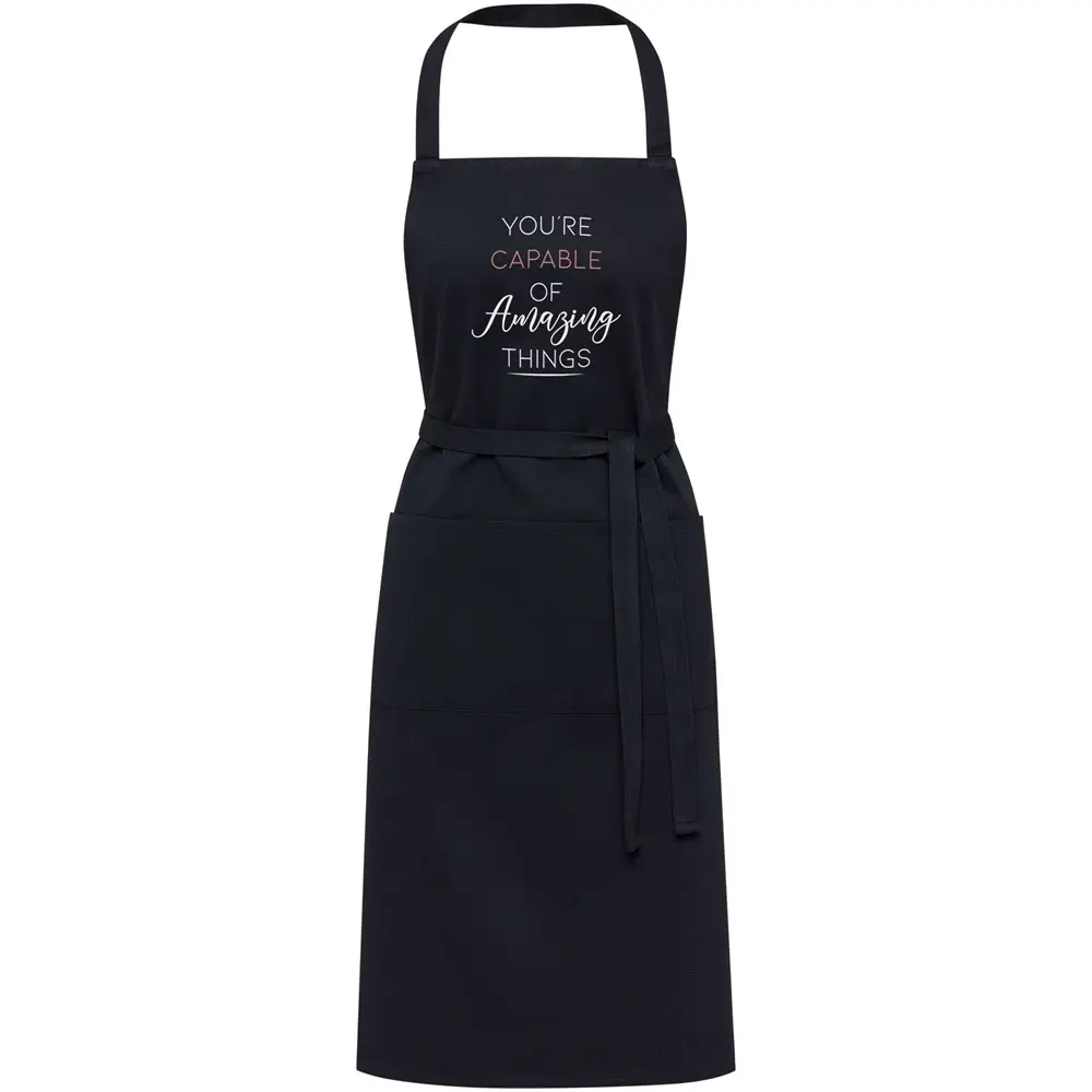 Het schort bevat Cyclo®-vezels uit voorgesorteerd afval, wat de behoefte aan nieuwe grondstoffen minimaliseert en een circulair productieproces ondersteunt. Dit toont uw engagement voor duurzaamheid, een waarde die aanspreekt bij milieubewuste doelgroepen. Met de Aware™-tracer via QR-code volgt u de oorsprong en keten van het product, wat transparantie biedt en uw imago als verantwoord bedrijf versterkt. Voor personalisatie kiest u uit technieken zoals borduren.