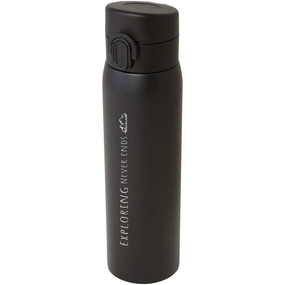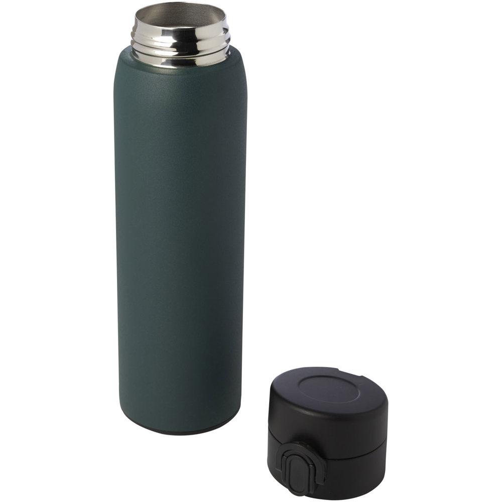 Ontdek deze RCS-gecertificeerde fles van 450 ml, perfect als gepersonaliseerd relatiegeschenk met jouw logo. Dankzij de koperen vacuümisolatie blijft je drank urenlang warm of koud, en de lekvrije constructie met eenvoudig knopmechanisme maakt hem ideaal voor onderweg.