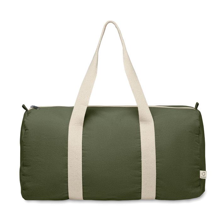 Reis-/ sporttas met zijvak met ritssluiting en binnenvak met ritssluiting in 320gr/m² gerecycled katoen (80%) en gerecycled polyester (20%) met lange hengsels.
