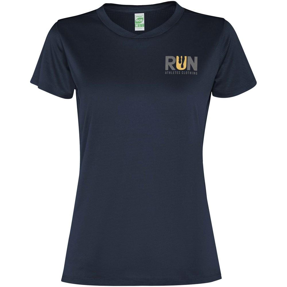 Ontdek dit lichte dames sport t-shirt van gercycled polyester, perfect voor jouw marketingacties en events. Je krijgt een kraag met stylish gekruist detail en flatlockstiksels voor een premium look. De rugpas en mouwen zijn van superademende stof, zodat je drager altijd fris blijft tijdens beweging.