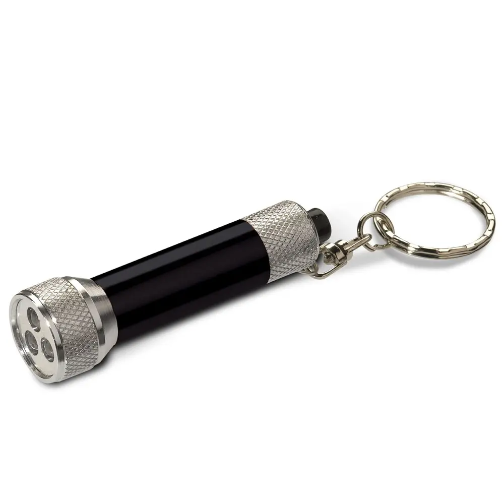 Ontdek deze metalen sleutelhanger met geïntegreerd zaklampje, ideaal als gepersonaliseerd relatiegeschenk voor uw onderneming. Met drie kleine LED-lampjes biedt het een opvallende lichtopbrengst, perfect voor dagelijks gebruik. De diameter bedraagt 18 mm, wat zorgt voor een compact en handig formaat.