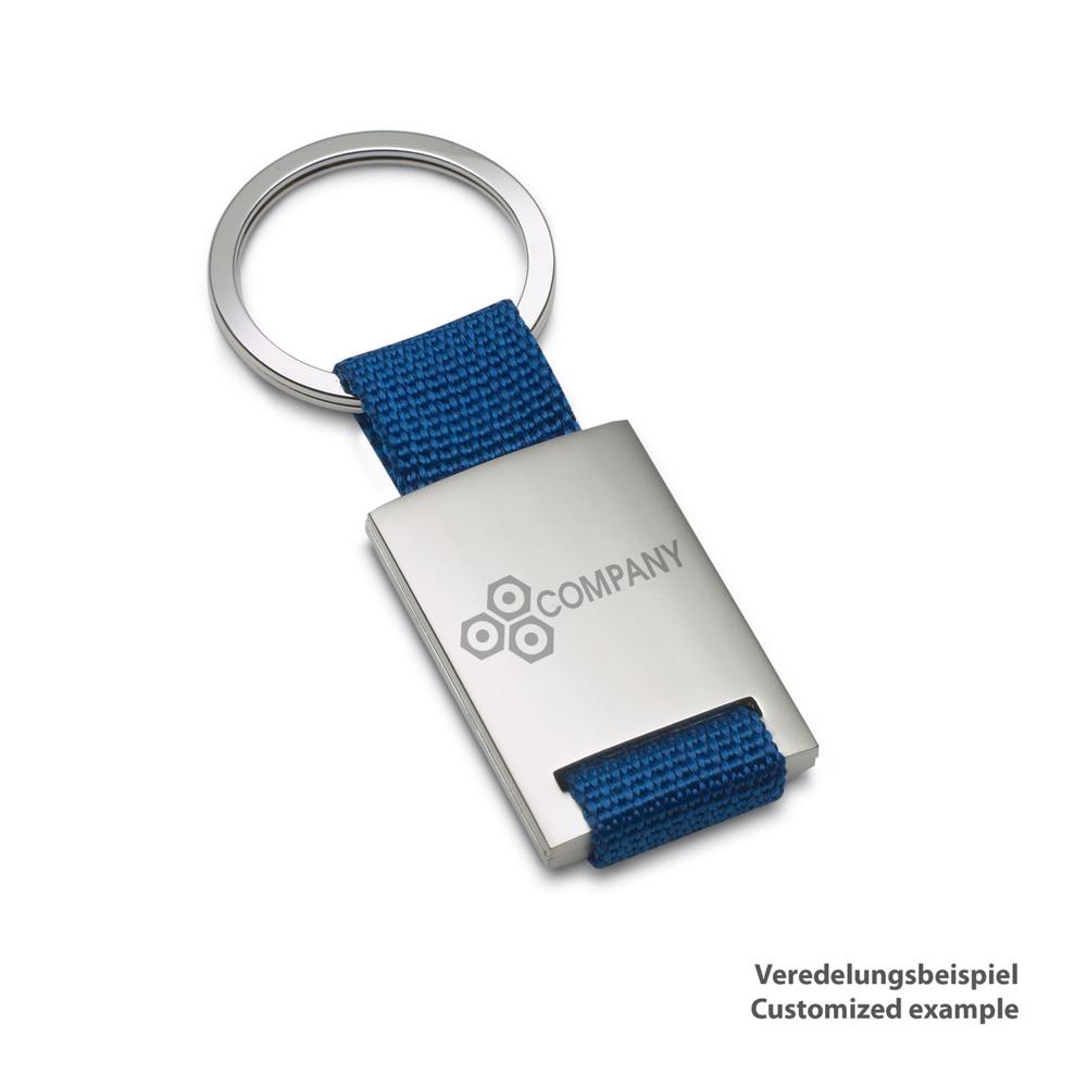 Sportieve elegantie - een sleutelhanger van formaat. De materiaalmix van metaal en nylonband geeft de sleutelhanger zowel een sportieve als elegante uitstraling. Met een lasergravure wordt de sleutelhanger de perfecte merkambassadeur.