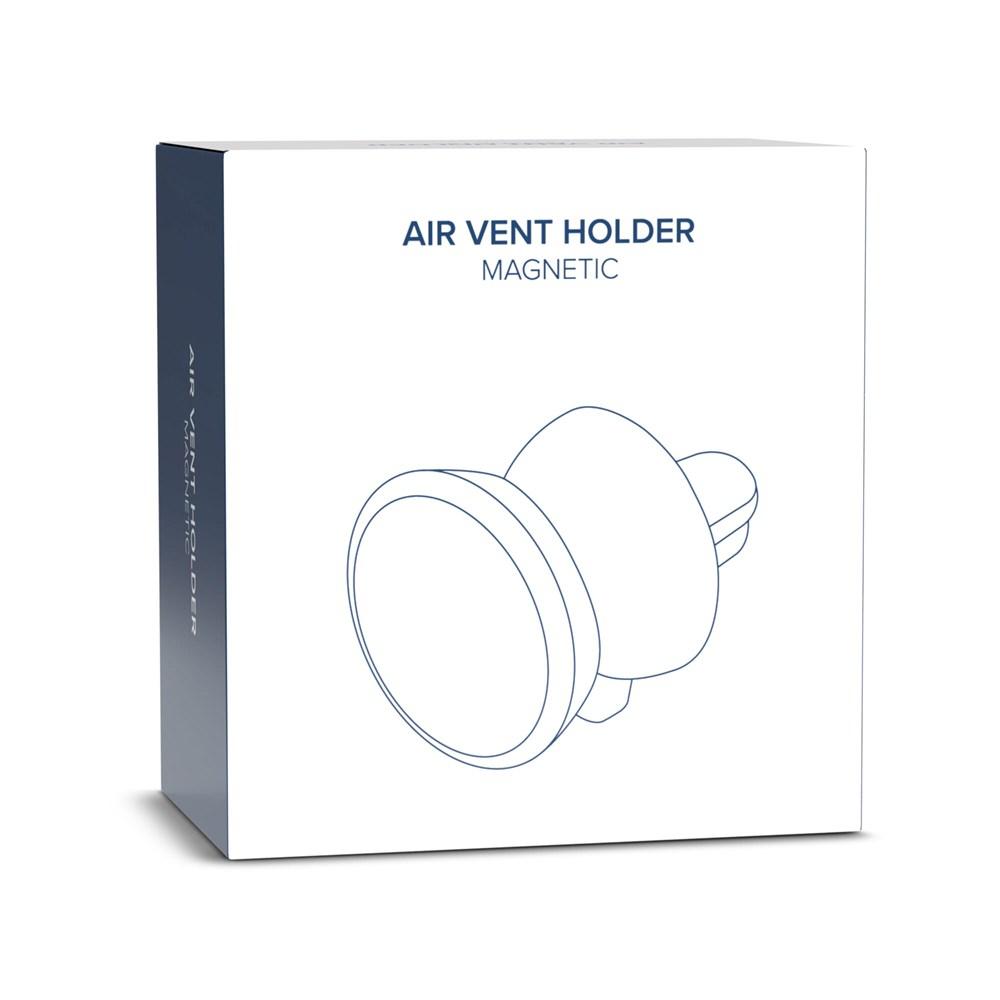 Magnetische houder die bestaat uit twee delen: een metalen deel met sticker voor achter op de telefoon en een deel voor in de auto. Zo bouw is het ventilatierooster in de auto in een handomdraai om te bouwen tot een carkit.