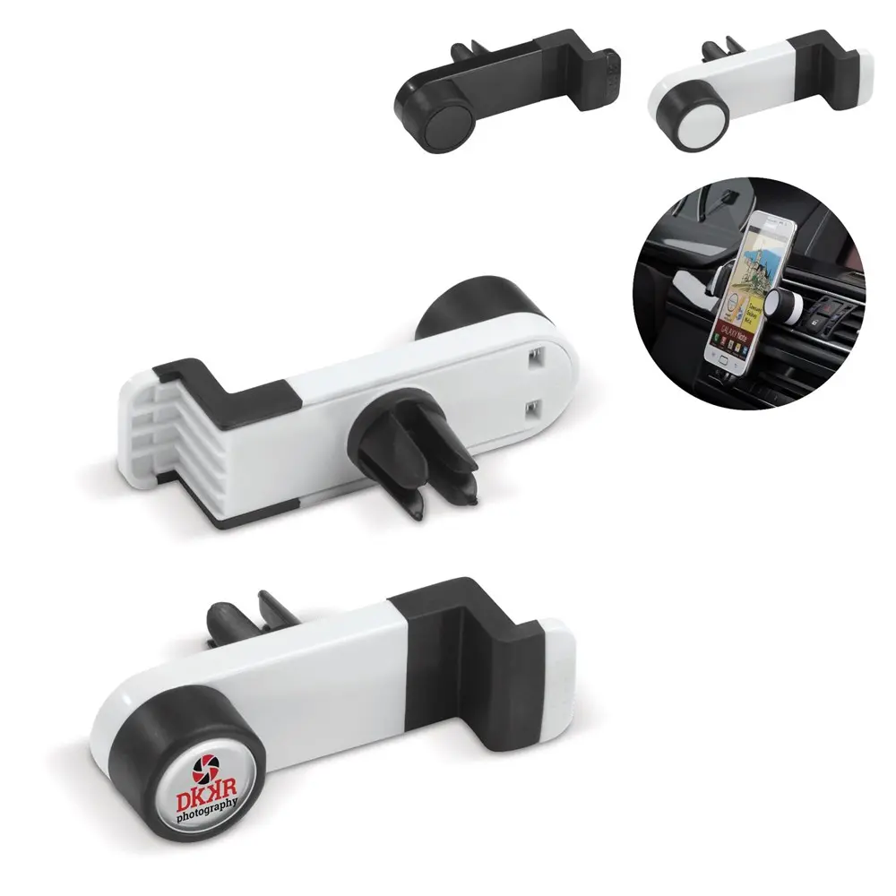 Ontdek onze smartphonehouder auto met veer, ideaal voor uw marketingacties en events. Deze praktische houder transformeert het ventilatierooster in uw auto eenvoudig in een hands-free carkit, zodat u veilig en handsfree kunt navigeren of bellen. Perfect als gepersonaliseerd relatiegeschenk met uw logo bedrukt, om uw merk bij uw klanten te promoten tijdens het dagelijks pendelen.