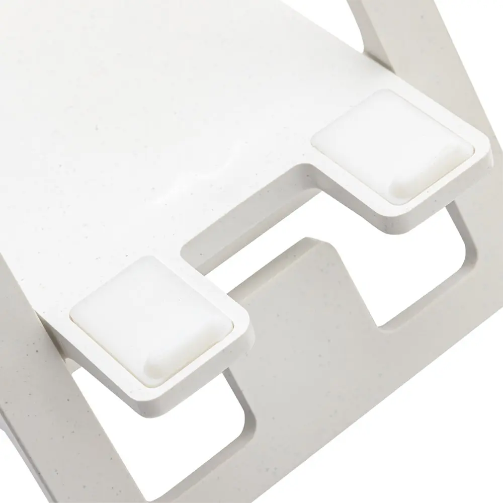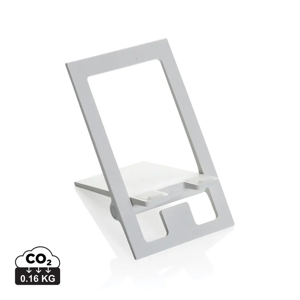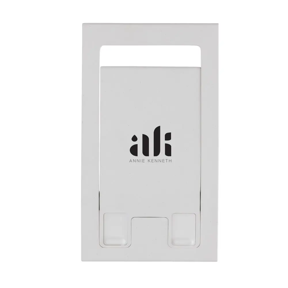 Ontdek onze platte en opvouwbare telefoonstandaard, vervaardigd uit RCS-gerecycled ABS. Dit praktische relatiegeschenk wordt plat geleverd en vouwt eenvoudig uit tot een robuuste standaard die telefoons van alle formaten ondersteunt. U kunt de kijkhoek moeiteloos aanpassen, terwijl de siliconen demping uw apparaat beschermt en in optimale conditie houdt.
