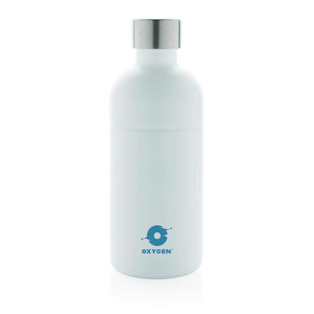 Deze frisdrankfles is gemaakt van gerecycled roestvrij staal en is perfect voor dagelijks gebruik en hydratatie. Door het unieke ontwerp kun je hem zelfs gebruiken voor koolzuurhoudende dranken en is hij gegarandeerd lekvrij. Gemaakt met RCS (Recycled Claim Standard) gecertificeerde gerecyclede materialen. RCS-certificering zorgt voor een volledig gecertificeerde toeleveringsketen van de gerecyclede materialen. Totale gerecyclede inhoud: 85% op basis van het totale gewicht van het artikel. BPA-vrij. Inhoud 800ml. Inclusief FSC®-gecertificeerde kraftverpakking. Geregistreerd Ontwerp®.