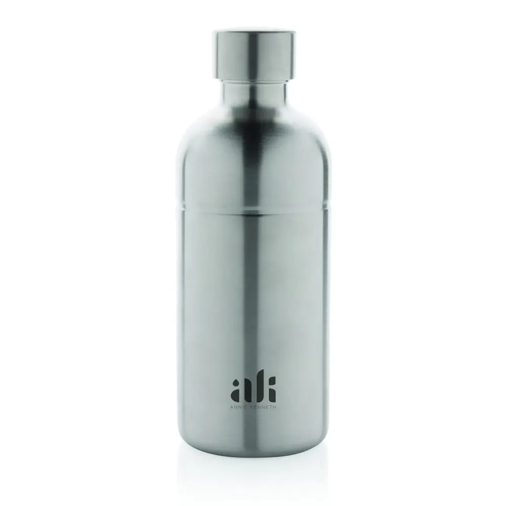 Ontdek deze hoogwaardige drinkfles, vervaardigd uit gerecycled roestvrij staal. Ideaal als relatiegeschenk voor uw onderneming, biedt deze fles een perfecte combinatie van functionaliteit en milieubewustzijn. Met een inhoud van 800 ml houdt u uw klanten gehydrateerd tijdens events of dagelijkse routines, terwijl u uw merkpromotie versterkt door personalisatie met logobedrukking.