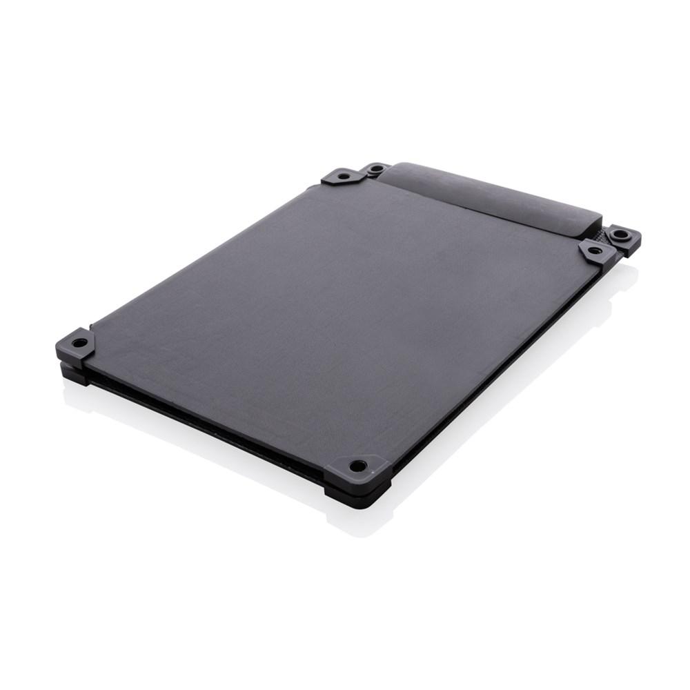 10W dubbel opvouwbaar zonnepaneel dat rechtstreeks opladen van uw mobiele apparaat, luidspreker, powerbank of ander apparaat mogelijk maakt. Sluit eenvoudig uw kabel aan op het apparaat terwijl het paneel in het zonlicht staat en begin met opladen. Laadsnelheid is afhankelijk van de omstandigheden. Het paneel maakt gebruik van hoogwaardige monokristallijne zonnepanelen met een conversieratio van 21%. Met USB A- en Type C-uitgang (max. 5V/1A) en een oplaadindicator om de laadsnelheid weer te geven. Oplaadsnelheid zonne-energie: 5V/2000mA. Gemaakt van PET-materiaal en RCS-gecertificeerd gerecycled ABS. Met geïntegreerde standaardfunctie om de zonnepanelen onder een optimale hoek te gebruiken. IPX 6 waterdicht. Verpakt in FSC®-mixverpakking.