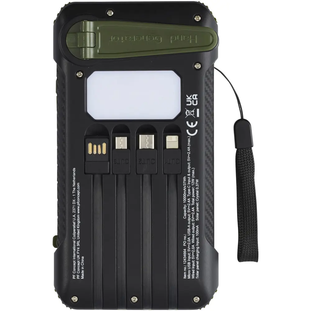 De Soldy RCS-gerecyclede powerbank van 10.000 mAh met zonnedynamo is het perfecte relatiegeschenk voor uw marketingcampagnes en events. Gemaakt van gerecycled ABS-kunststof, voldoet hij aan RCS-normen en benadrukt uw commitment aan duurzaamheid. Met afmetingen van 15,9 x 3,1 x 8,5 cm past hij eenvoudig in een tas of rugzak, ideaal voor outdooractiviteiten of giveaways aan klanten.